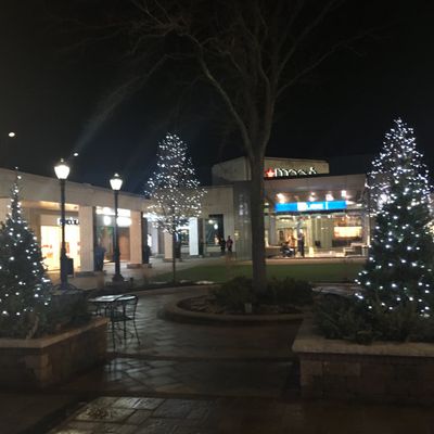 Beautifully landscaped, open-air shopping destination featuring meandering paths, water features, and ample seating. It offers a wide variety of shops, from high-end boutiques to department stores, alongside diverse dining options scattered throughout.
