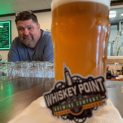 Craft brewery offering a selection of house-made beers and wines. The establishment features a clean and modern interior with large windows overlooking the harbor.