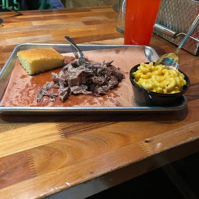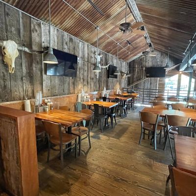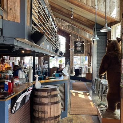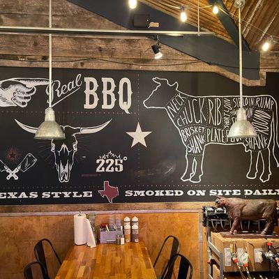 Mountain-town barbecue restaurant with a rustic interior, offering smoked meats, unique sauces, and a full bar, sometimes featuring live music.