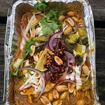 The menu features authentic Thai dishes like the Gang Jeud Woon Sen, which is a savory broth served over glass noodles with pork meatballs, napa cabbage, black pepper, and fresh herbs. Expect bold, spicy flavors and traditional ingredients like fish sauce.food_potoo