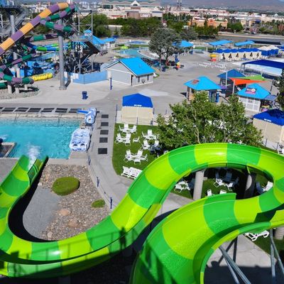 Water park offering a variety of slides and attractions for different age groups. It features dedicated areas for toddlers and older children, as well as thrilling rides for adults.