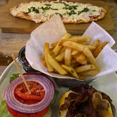 Enjoy a classic breakfast featuring hearty portions of eggs, crispy potatoes, and fluffy pancakes. The menu also includes a variety of options suitable for a light lunch or evening drinks.food_potoo