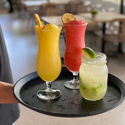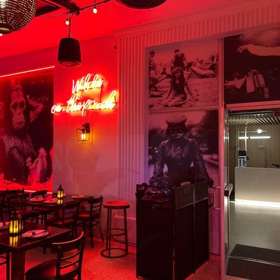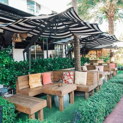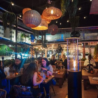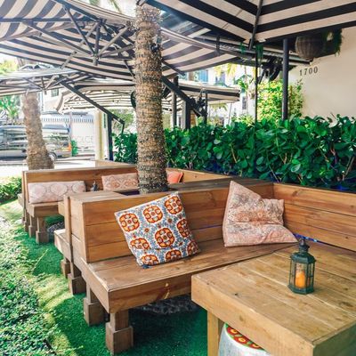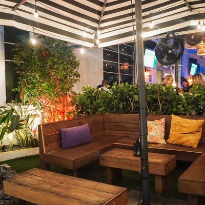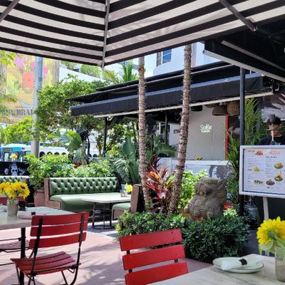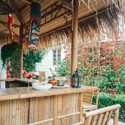 The decor is highly stylized and 'wilde,' filled with eye-catching elements that make the space feel visually dense and interesting. It serves as a breezy spot to unwind after a day at the beach or a shopping excursion.ambiance_potoo