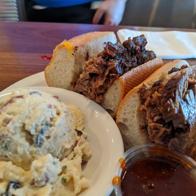 Enjoy hearty portions of BBQ chicken or the tender corned beef hash. The beans are also a standout, seasoned to perfection for a classic comfort food experience.food_potoo
