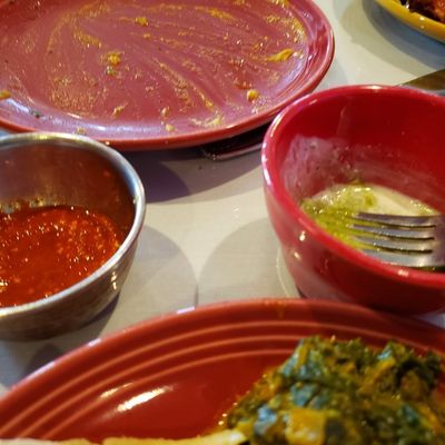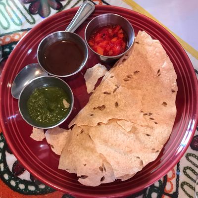 The palak paneer is rich and deeply flavorful, making it a standout choice. For a bright start to the meal, enjoy the complimentary crisp papadam served alongside a trio of chutneys.food_potoo
