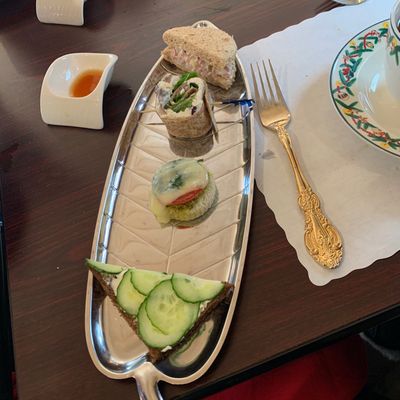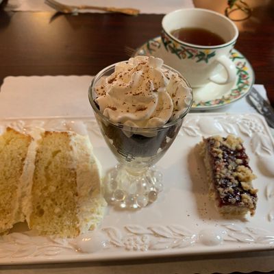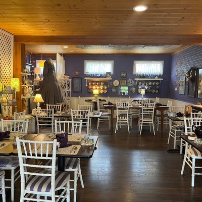 Charming cafe offering American and tea-focused cuisine, including homemade soups, sandwiches, and desserts, in a quaint setting.