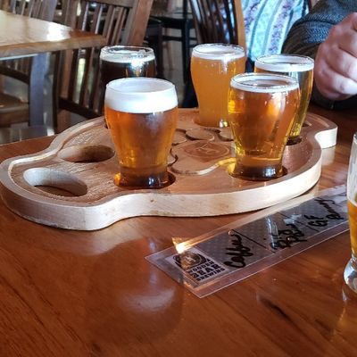 Casual brewpub offering a variety of craft beers and food options, including pizza and BBQ. The atmosphere is laid-back and family-friendly, with communal tables and an open concept.