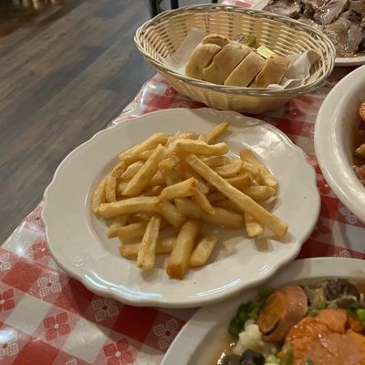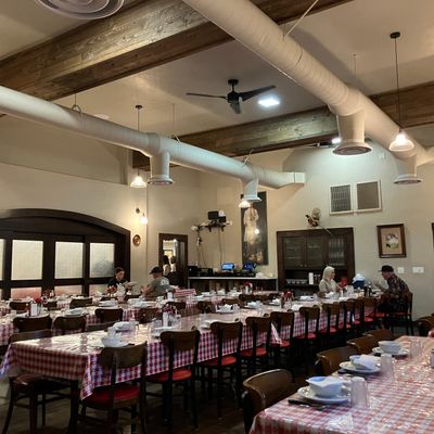 Historic Basque restaurant offering hearty, family-style meals featuring lamb, pork, and seafood alongside traditional sides like beans and soup.