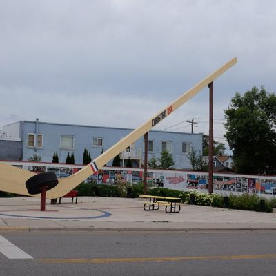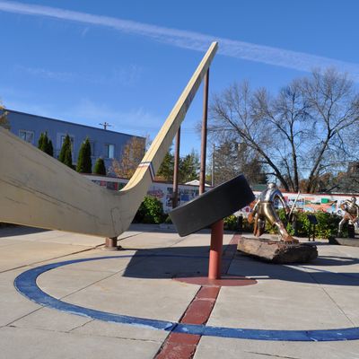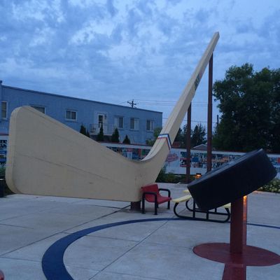 Unique roadside attraction commemorating Eveleth's deep hockey heritage. This massive wooden stick, accompanied by a large puck and informative murals, offers a fun photo opportunity.