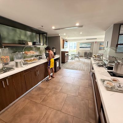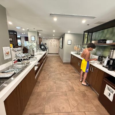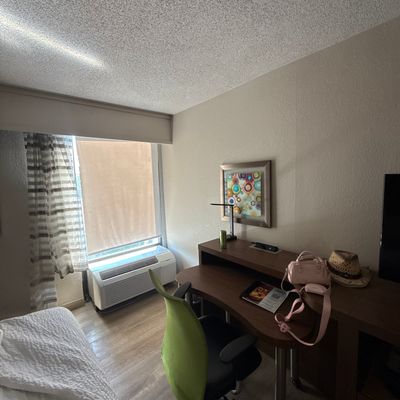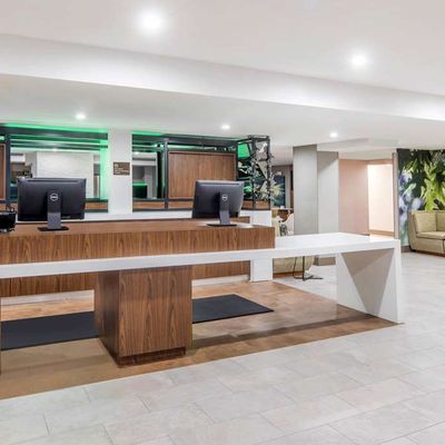 Hotel chain property. It offers rooms with hard floors and some amenities. The hotel has a lounge and dining area with modern decor.