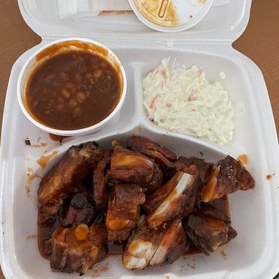 Drive-thru barbecue joint known for its generous portions of delicious ribs, pulled pork, and catfish, offering a casual, no-frills experience.