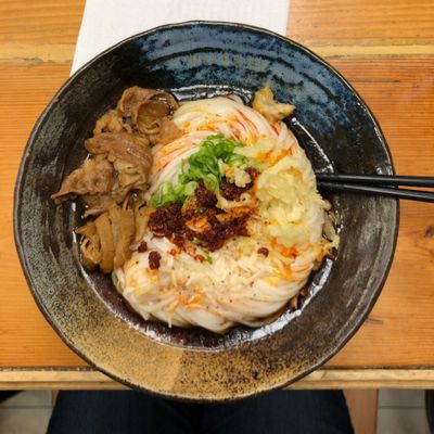 Yume Ga Arukara is hyper-focused on udon, serving just a hot and a cold version, both incredible, but in cold weather, the hot version is substantially more brothy.