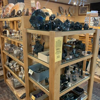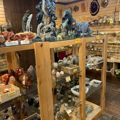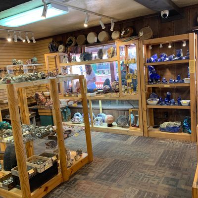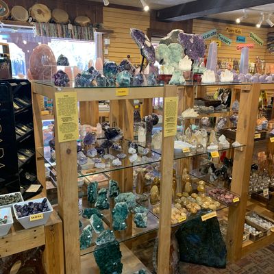 Well-organized shop offering a wide variety of rocks, gems, and minerals. The specimens are thoughtfully displayed with informative labels, and there are items available across all price ranges.