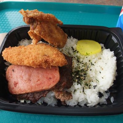 Hawaiian fast-food chain with a bakery, offering American and Hawaiian dishes like loco moco and fried chicken, known for its affordable prices and local appeal.