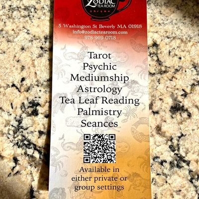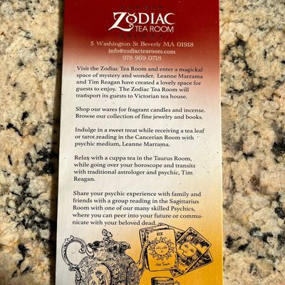 Zodiac Tea Room offers a unique and intimate experience focused on divination and spiritual connection. Patrons can receive insightful readings, including tea leaf, tarot, and mediumship, in a warm and relaxing atmosphere.